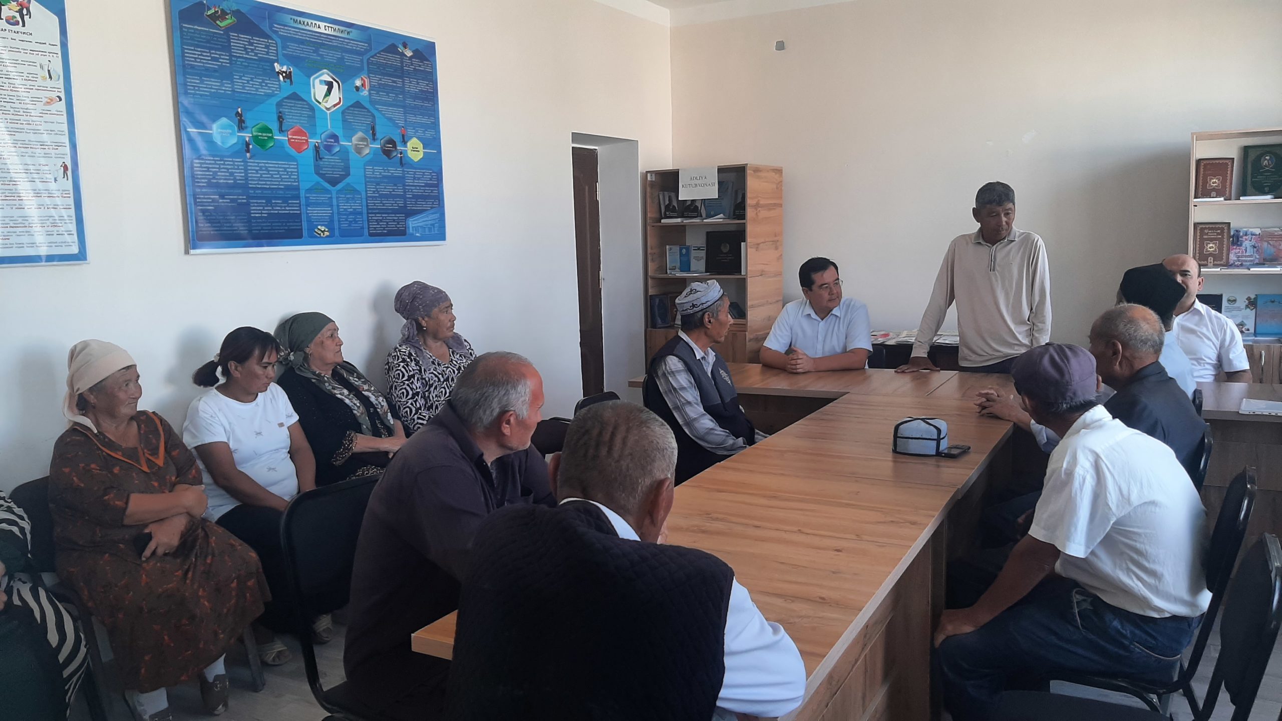 фуқаролар йиғини биносида Навбаҳор туманлараро иқтисодий суди раиси Б.Джумаев,